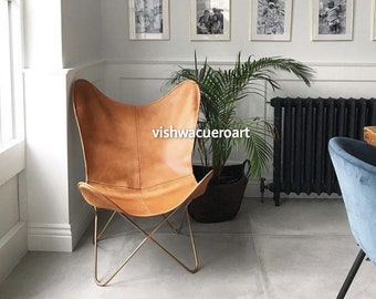 Handmade Tan Leather Arm Chair Cover Leather Butterfly Chair Home Decor 0309782144361 Indian Hando Art